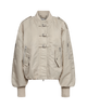 CMBOMBER-JACKET er en vatteret bomberjakke i en eksklusiv kvalitet med logomønstret foring, lynlåslommer på fronten og ærmerne, trykknap- og lynlåslukning med spænder, lange ballonærmer samt elastikkant i bunden, der fremhæver den vide pasform.