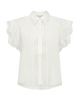 CMMOLLY-SHIRT er en raffineret statement style i en vævet lyocellblanding, detaljeret med skulpturelle 3D-blomsterapplikationer langs ærmegabene. Det rene skjortedesign skaber en markant kontrast til de voluminøse blomster, der giver et feminint og iøjnefaldende udtryk.