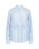 CMMOLLY-BLOUSE er en elegant skjorte-bluse fremstillet i en let transparent vævet lyocell-blend. Den lige, løstsiddende pasform suppleres af voluminøse raglanærmer med dybe læg. Raffinerede blondeindsatser på krop og ærmer skaber en skulpturel effekt. En skjult stolpelukning med én synlig stofbetrukket knap fuldender det eksklusive look.