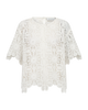 CMVILJA-BLOUSE er en bluse i en eksklusiv kvalitet med en løs pasform, korte ærmer, en rund halsudskæring, knaplukning med slids i nakken, foring samt det smukkeste allover broderede mønster.