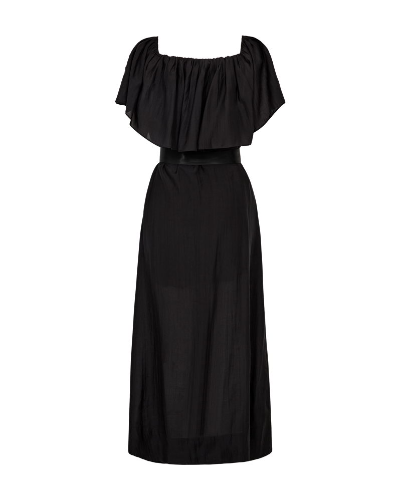 CMMOLLY - KJOLE MED FLÆSER OG BÆLTE I SORT