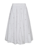 CMSHIRLEY-SKIRT er en ballonnederdel i en eksklusiv poplinkvalitet med perler i forskellige størrelser på fronten, elastik bagpå, fuld foring samt læg front og bag, der understreger den fine vidde i skørtet. Brug den med en Siv top for et casual look.