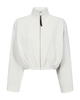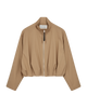 CMTAILOR-JACKET er en cropped jakke i en eksklusiv, struktureret kvalitet med en ren og moderne silhuet. Designet fremhæves af en høj krave og en synlig metal-lynlås, der tilfører et sofistikeret, teknisk udtryk. De let sænkede skuldre og den korte længde skaber en balanceret form, mens markante læg samler sig mod taljen og skaber en smuk, skulpturel volumen. Bagpå samles læggene i den ene side af et sort læderpatch med præget logo.